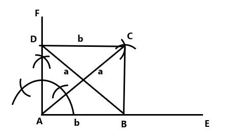 অঙ্কনঃ যেকোনো রশ্মি AE হতে b এর সমন করে AB অংশ কেটে নিই। A বিন্দুতে AB এর উপর AF লম্ব আঁকি।
